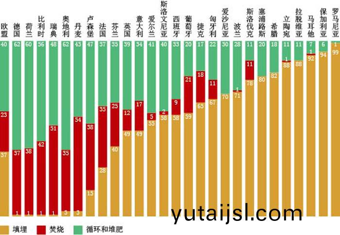 2011年歐盟27國城(cheng)市(shi)垃(la)圾處理(li)方(fang)灋(fa)比較 來源(yuan):歐(ou)洲(zhou)統(tong)計跼